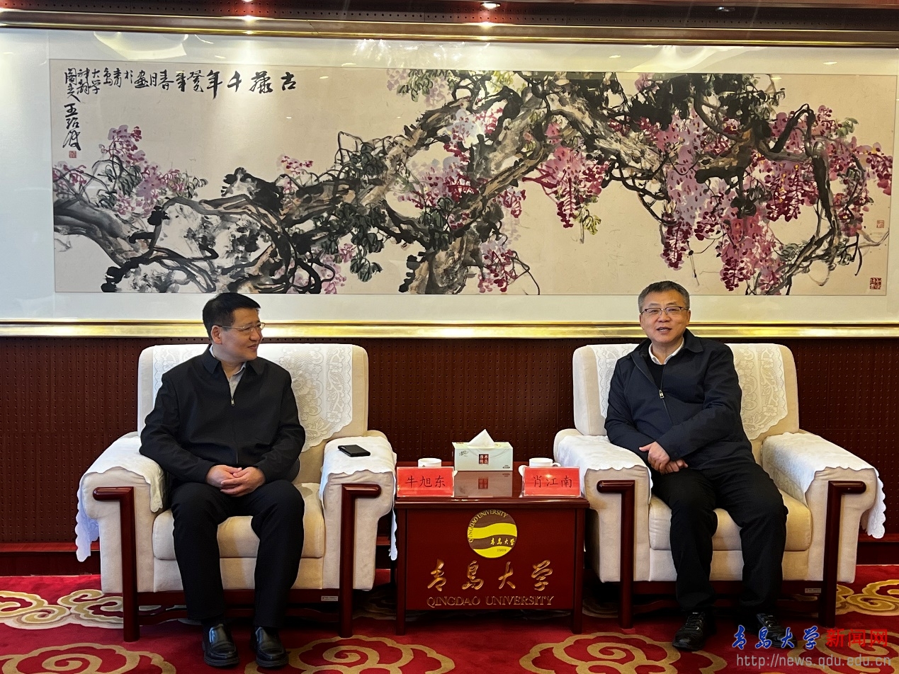 肖江南代表学校党委对牛旭东一行到来表示热烈欢迎,对市侨联长期以来对我校侨务工作的关心指导与大力支持表示衷心感谢,他介绍了学校事业发展及侨务工作的基本情况,表示侨界人士和留学归国人员是学校事业发展的重要力量,学校高度重视侨务工作,积极搭建平台、创造条件,凝聚侨心、汇聚侨智、发挥侨力、为侨服务,支持侨界人士在各自岗位上施展才华、发挥作用。他希望通过与市侨联深化合作,充分发挥我校作为综合性大学学科专业齐全、人才汇聚优势,更好地为学校事业高质量发展和青岛市经济社会建设贡献力量。