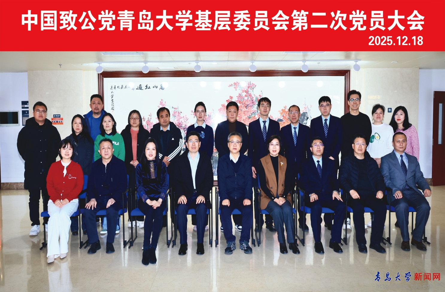 会议听取并审议通过了致公党青岛市委会副主委、青岛大学基层委主委王乙潜代表第一届基层委所作的工作报告,选举产生了第二届基层委,张之峰、王涛、朱呈瞻、赵可晓、施慧、李鸣、李风、张立泽、曾令香、陶琳当选为委员。经第二届基层委员会第一次全体会议选举,张之峰当选为主任委员,王涛、朱呈瞻、赵可晓、施慧当选为副主任委员。